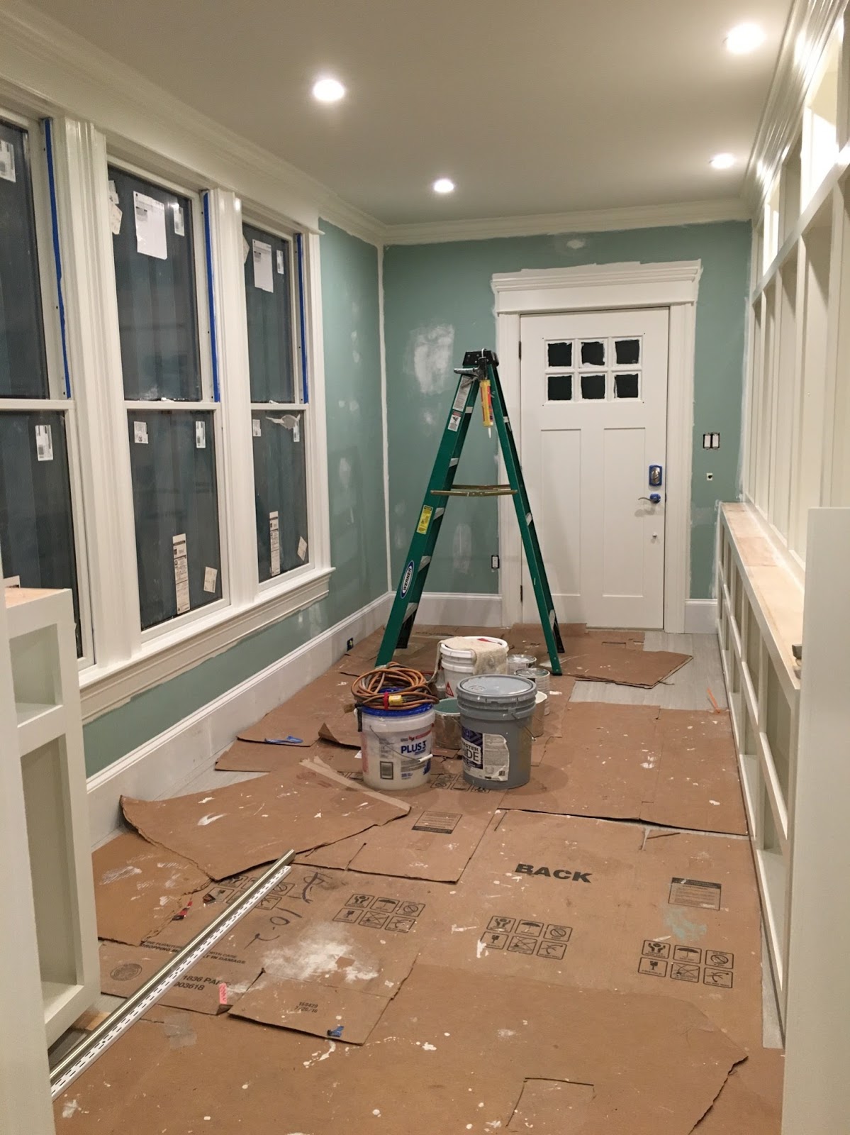 First floor back porch. The small staging area for construction stuff. And actually, as of this morning, all this stuff is gone!